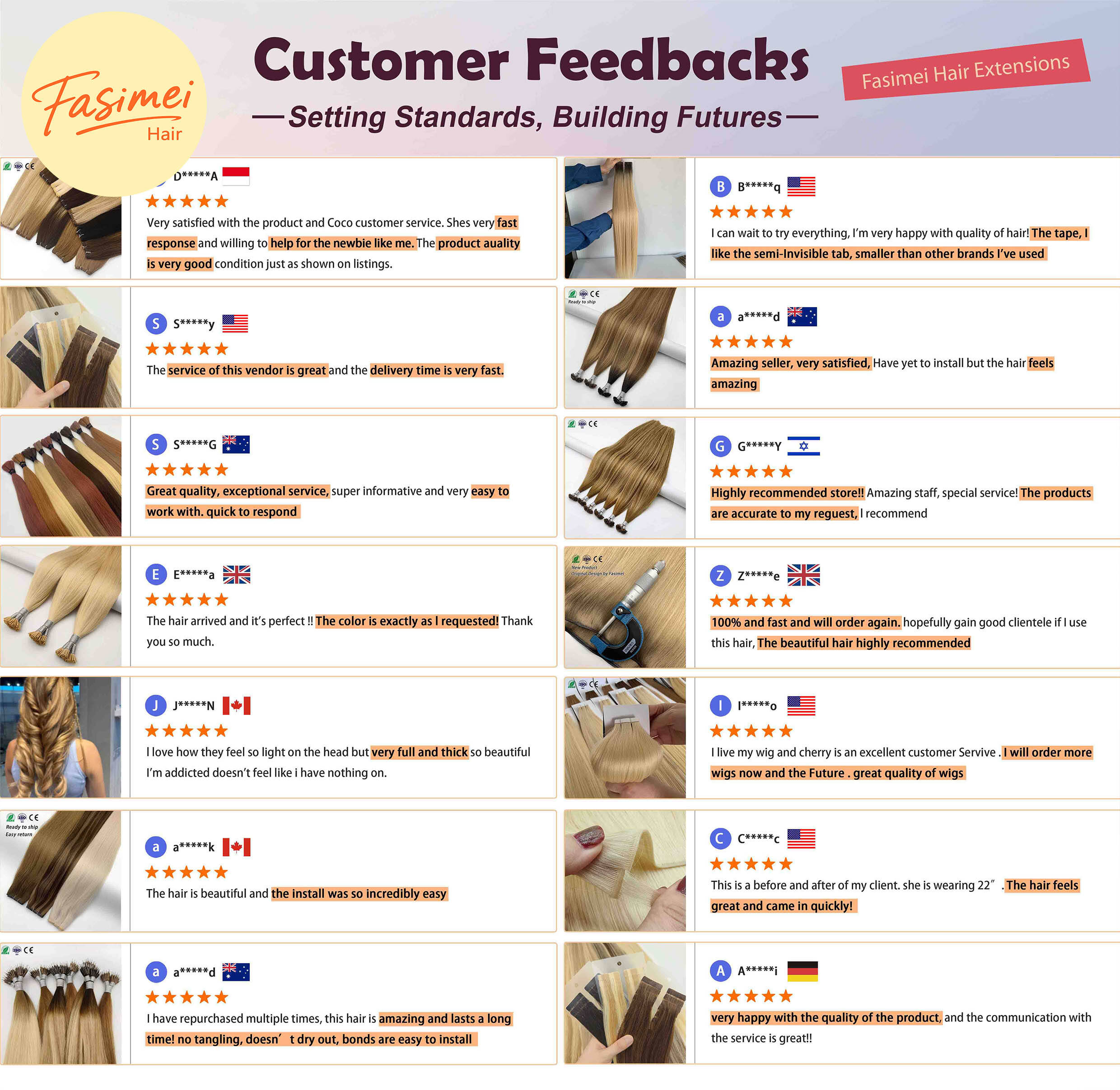 The Genius Weft hair extensions have CE and RoHS certification and can provide a full range of after-sales service of top-grade hair, We mainly exports to the United States, Italy, and the United Kingdom, has cooperated with Fortune 500 companies, provides OEM services for well-known brands, and excels in quality control. The positive review rate is 99.9%.